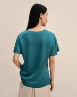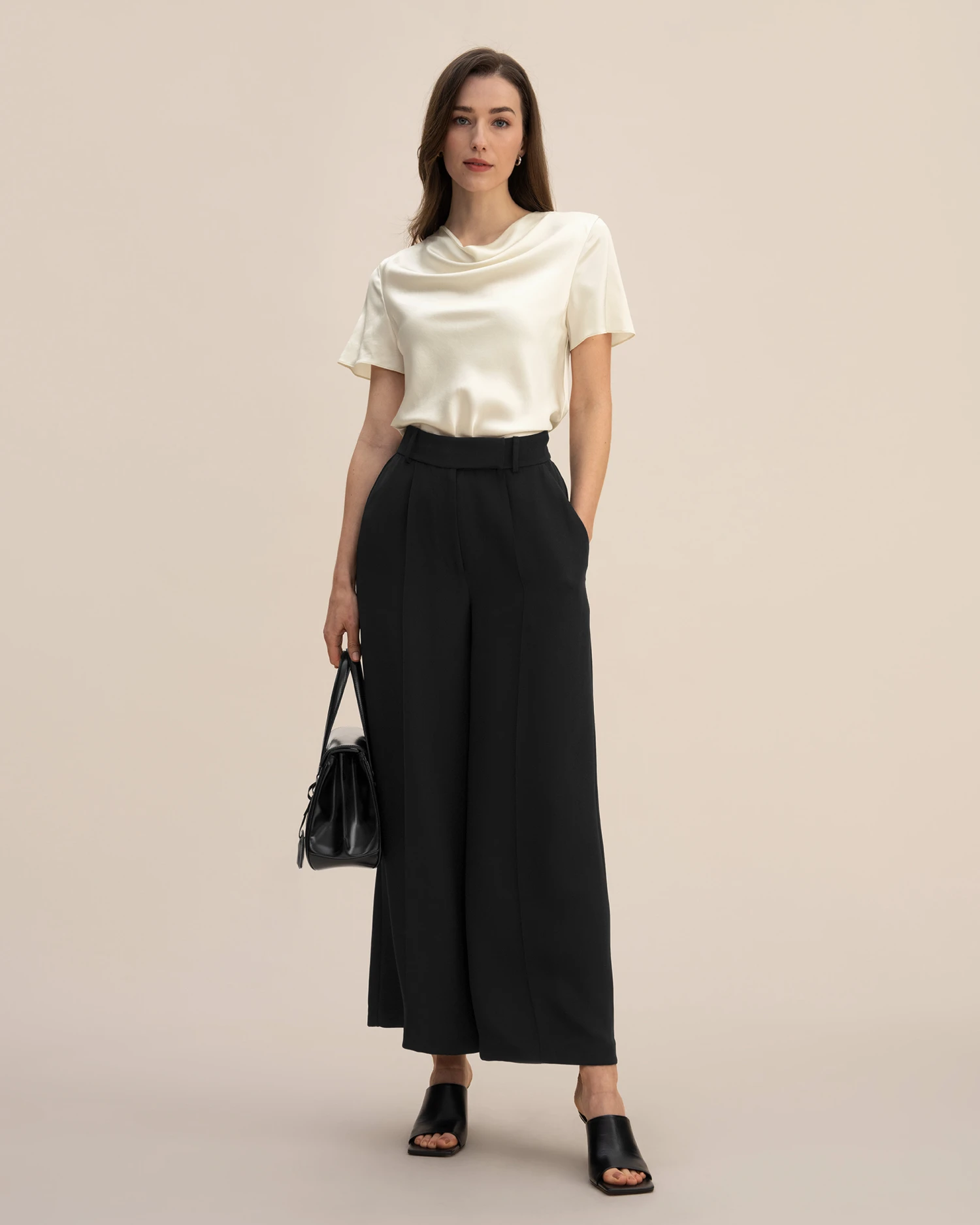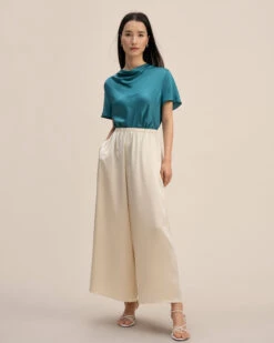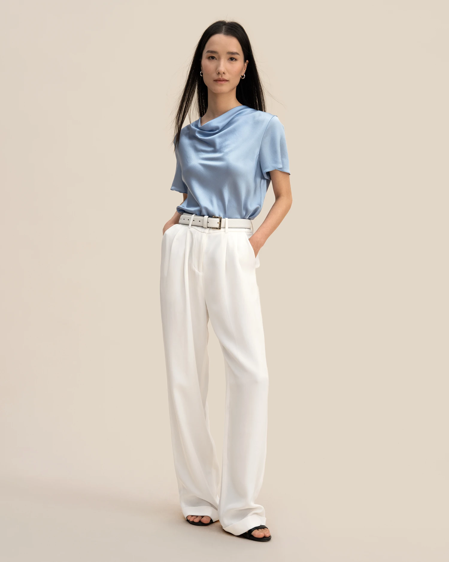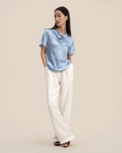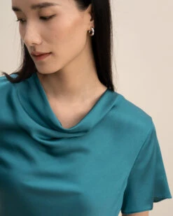 Achieve elegance with ease! Each fold of the cowl neck t-shirt emphasizes the luminousness and shine of the silk charmeuse, this top looks great paired with shorts or wide-leg pants for a casual look, or skirts for a more feminine and graceful outfit.