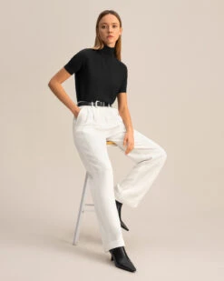 This turtle neck mid sleeve shirt is made with 90% silk and 10% cashmere, it feels soft and slippery against the skin and at the meantime helps shape the body for an elegant look.