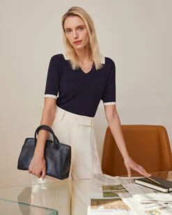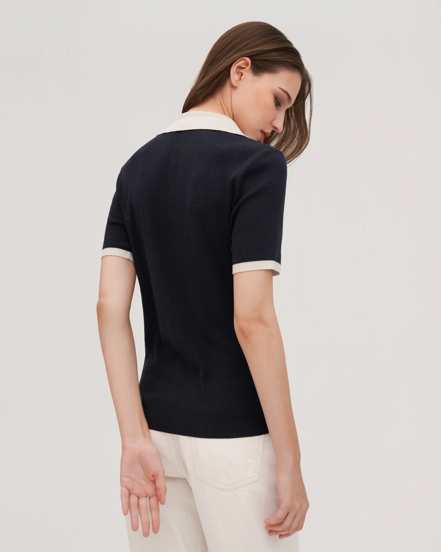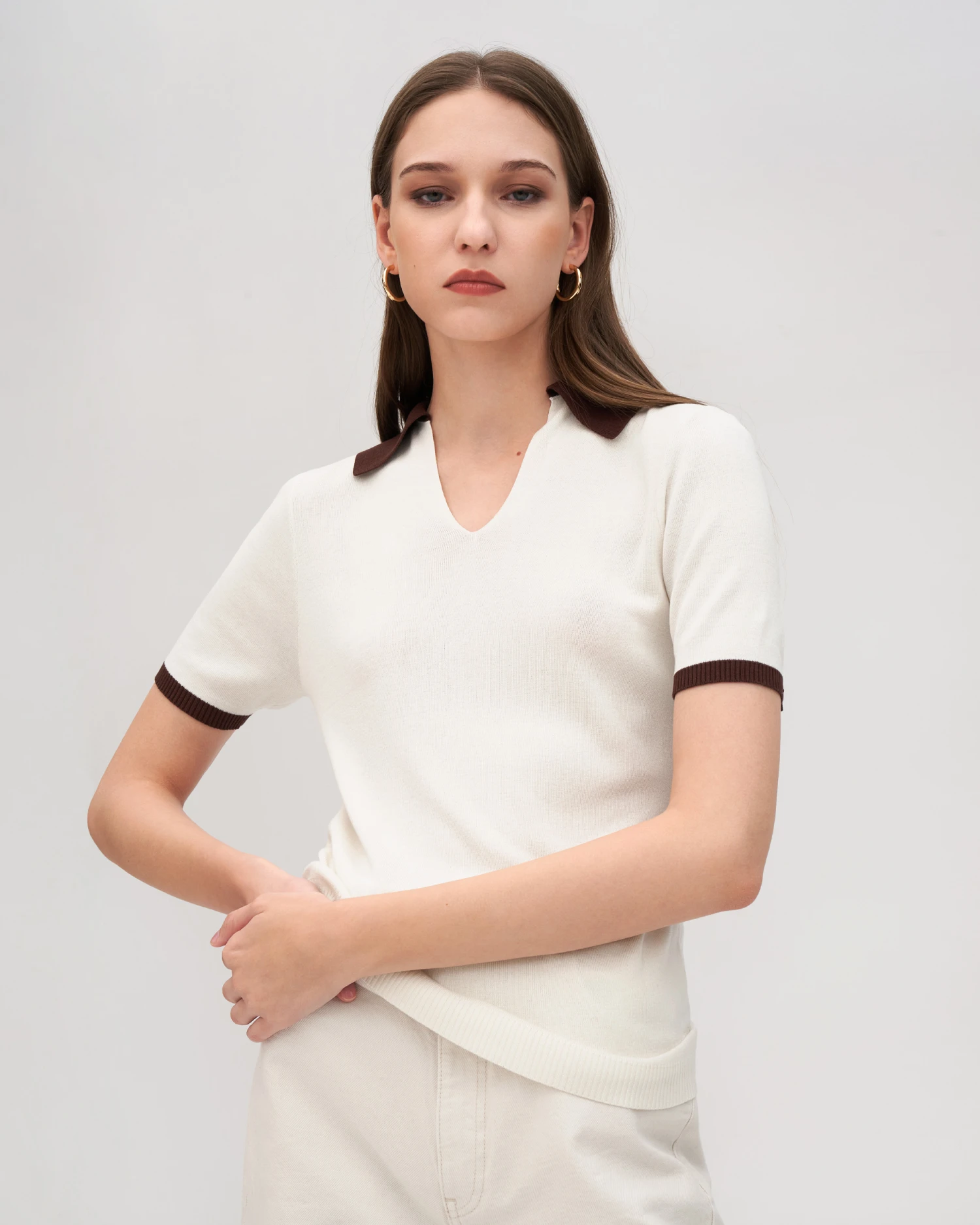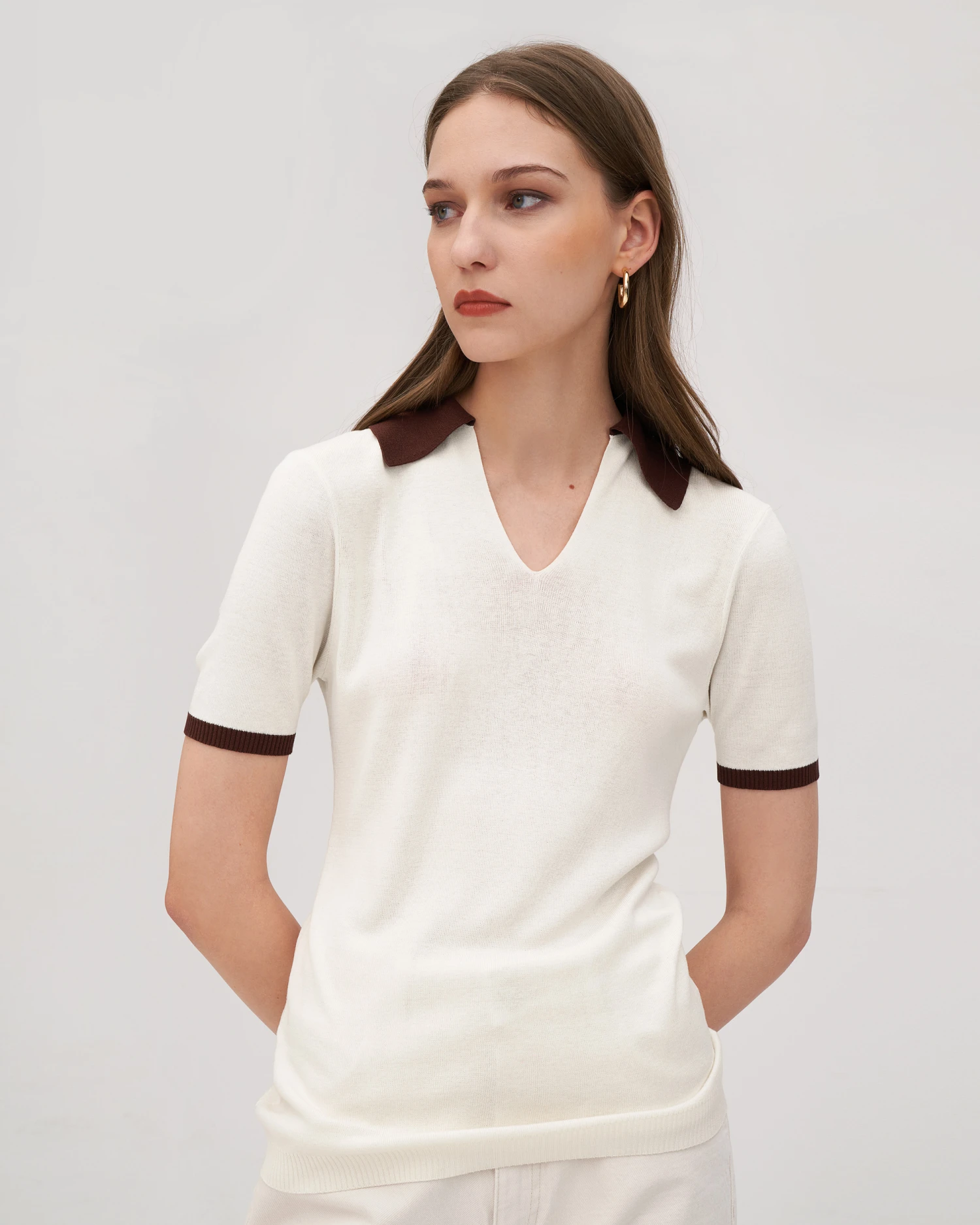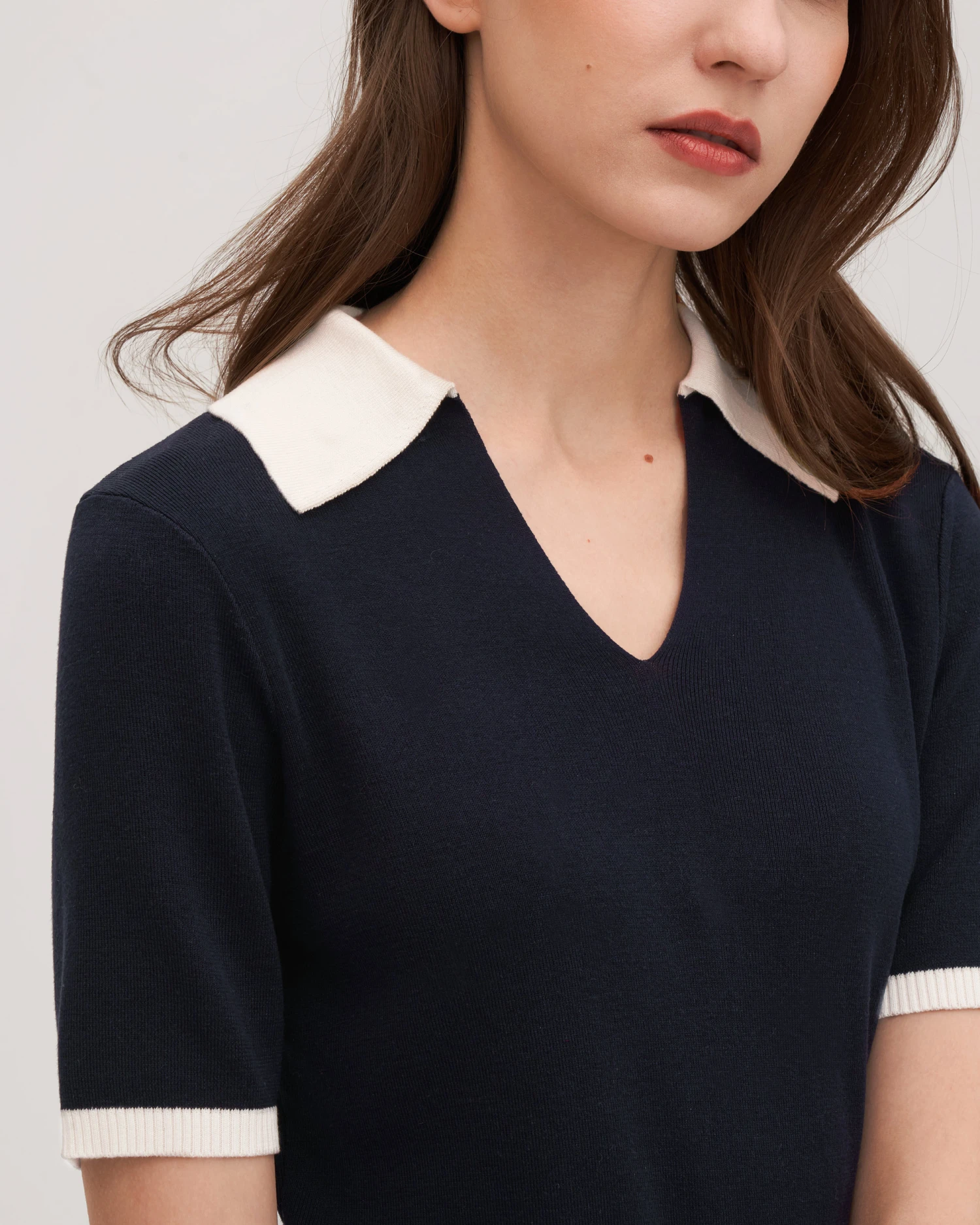 Bring your A-game in this sporty and figure-flatting silhouette crafted from an ultra-comfortable stretchy silk knit that moves with you. Versatile enough to take from business to sports and everything in between. Feeling preppy? We love playing up the v-neckline with a delicate necklace.