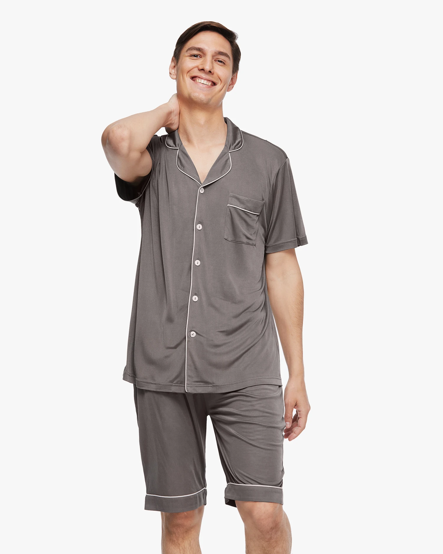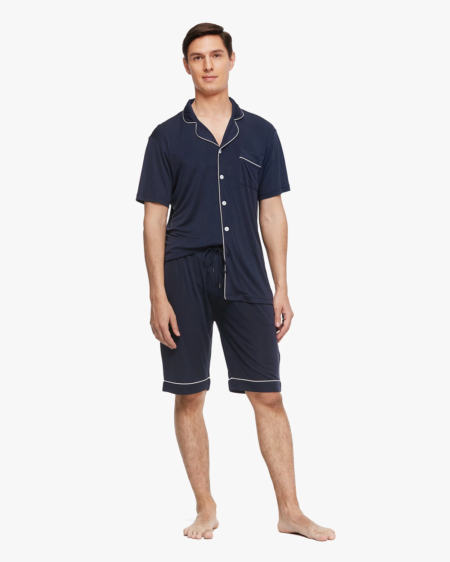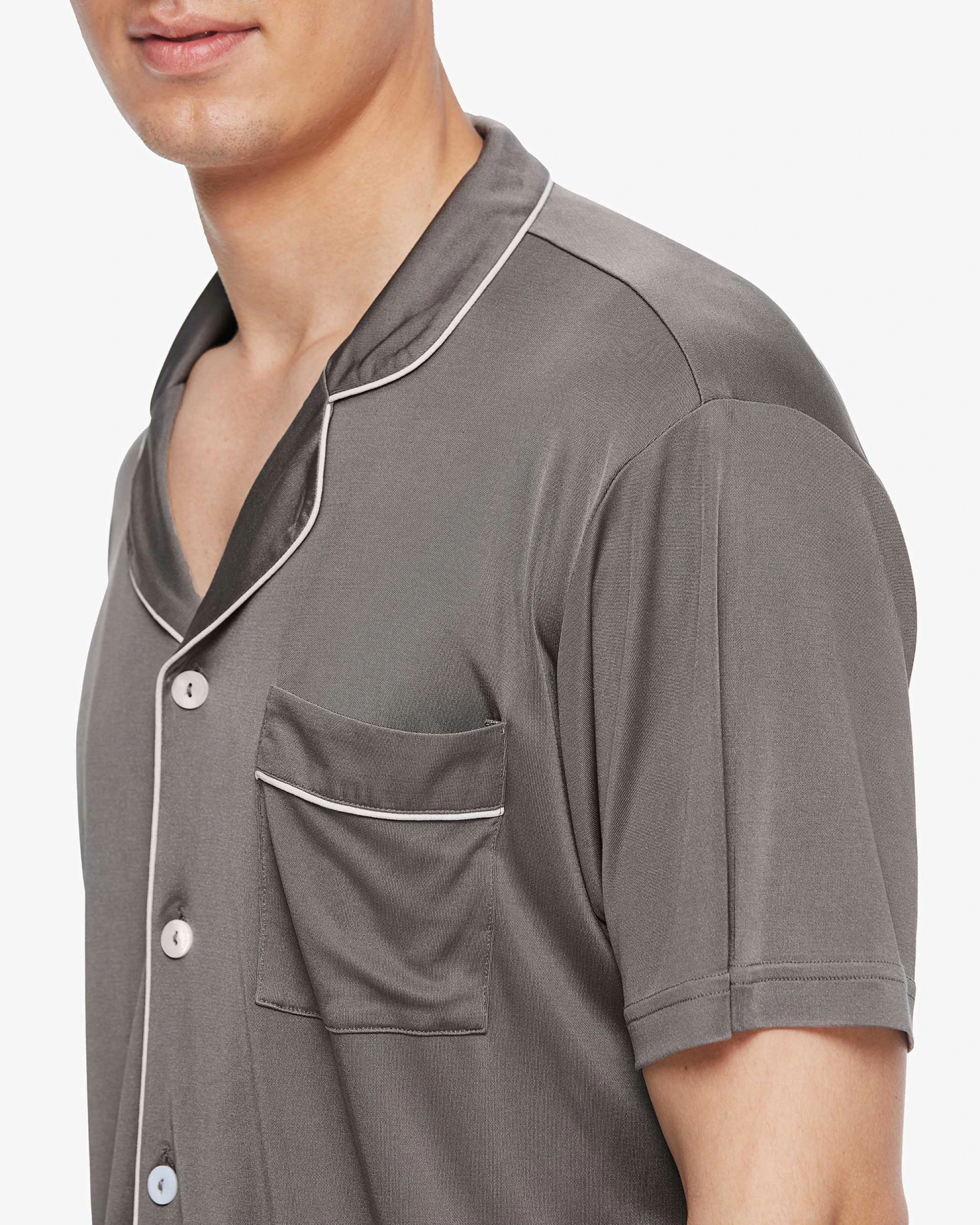 Perfect for keeping you cool and comfortable in warmer climates. The Men’s Short Sleeve Silk Pajamas with Contrast Piping feature a relaxed short sleeve pajama-style shirt with loose-fit, elastic waist shorts that make for the ultimate in comfort. The shirt and shorts have a contrast piping trim that adds a stylish finish.