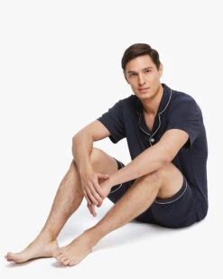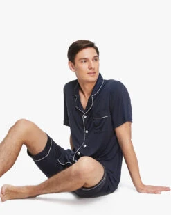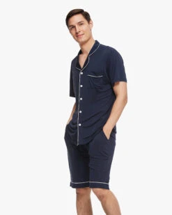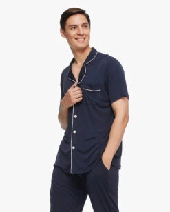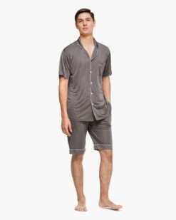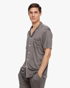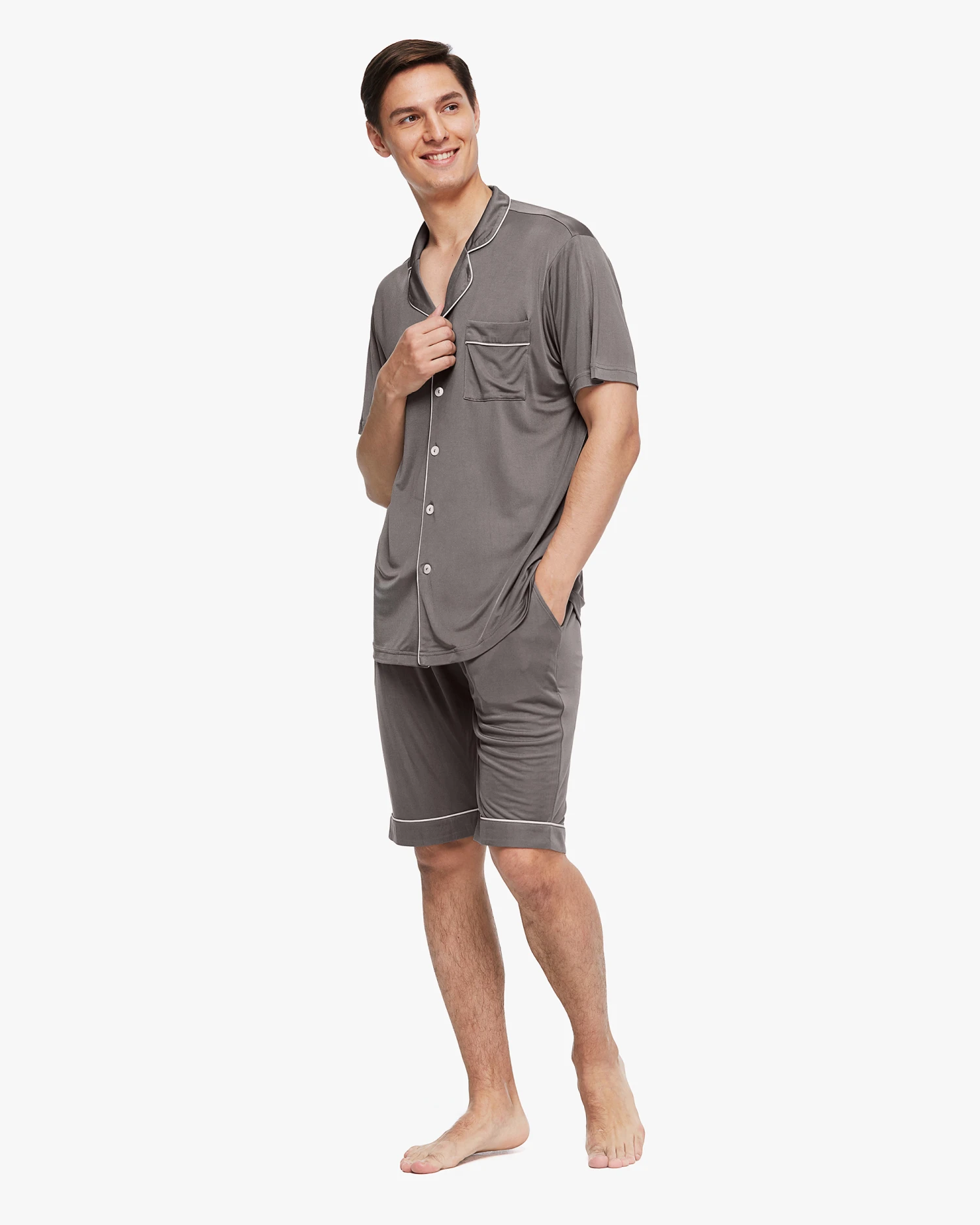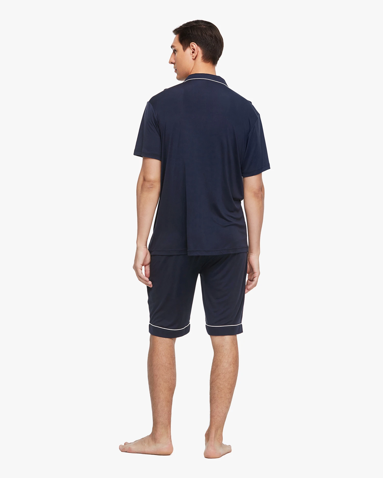 Perfect for keeping you cool and comfortable in warmer climates. The Men’s Short Sleeve Silk Pajamas with Contrast Piping feature a relaxed short sleeve pajama-style shirt with loose-fit, elastic waist shorts that make for the ultimate in comfort. The shirt and shorts have a contrast piping trim that adds a stylish finish.
