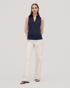 We like to make a lasting impression, so we crafted this timeless V-neck shirt from an indulgent silk charmeuse for a classic look that will remain fresh, season after season. Sleek and minimal, this flattering piece promises to become a quality separate you’ll wear again and again.
