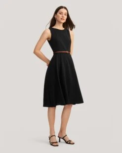 Cast a gorgeous silhouette in the Pleated Sleeveless Dress, which will soon become your failsafe dress for any special occasion. This dress has a fitted top, sleek neckline, and a full floaty skirt with pleats at the waist. The ease of this dress provides maximum versatility to mix and match with your favorite accessories. Wear with your most dazzling shoes and watch the fluted hem gently sway as you walk