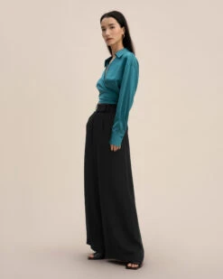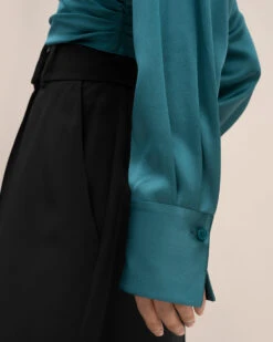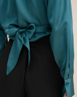 This shirt, with chic cross-neck and loose shoulder, is very comfortable as the wrap structure waist tie is suitable for different waist sizes without limits to figures, showing a more prominent waistline. Charmeuse silk brings silkier cool, especially in summer. The small tie at the back neckline adds lively details. Perfect to style with shorts, trousers, skirts and even dresses for casual occasions and holiday wear.